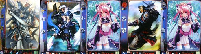 | みんなで池袋のサントロペでQMAor三国志。 三国志はやっぱり悲哀ゲーでした。 解散した後は北千住行きました。 誰もいなかったのでシエルでCPU戦。 と、乱入が来る。ヒスコハで 確か、1,2回勝った後はシエルで負け続けでしたorz すると、七夜使いの人と秋葉使いの人が来ました。 数回乱入した後、七夜使いが勝つ。 秋葉使いが勝ったので、青子で乱入。勝つ そしたら向こうからその人が話しかけてきてくださって、 以前、琥翠さんの知り合いとして会った人だと判明。 数試合ガチる。 その内、負けたのは1回だけでした。 その秋葉使いの人、低空鳥・低空2C・ダッシュ慣性空投げ等完璧で、非の打ち所が無いんですが・・・ 何故か勝てちゃいますw いかにもこれが相性なのか、って感じでしたねw あとはその方が青子慣れしてなかったってのが大きかったですね。 その後塾に行ってまた三国志やりました。 QMAやろうとしたんですけど、空いてなかったので。 1回だけメインデッキでやりました。 ちなみにこれがメインデッキです。 ![]() 非常に美形ぞろいのデッキですねw 孫策と周泰の2大自爆計略を小喬が回復してくれるというステキなデッキ。 特にSR孫策は武力諸々が上がり暴れまわった後、全快して武力9の馬が残るというヤヴァ性能。 呂蒙の代わりに陳武を入れて、さらに小喬を引き立たせるのもアリですが、僕は呂蒙スキスキスーなのでw で、意地と進撃の強烈さとカン沢のさりげない攻城により討伐成功! すると・・・こんなカードを引きました・・・